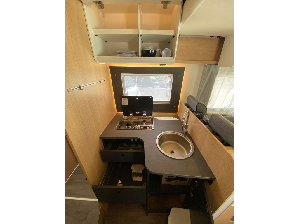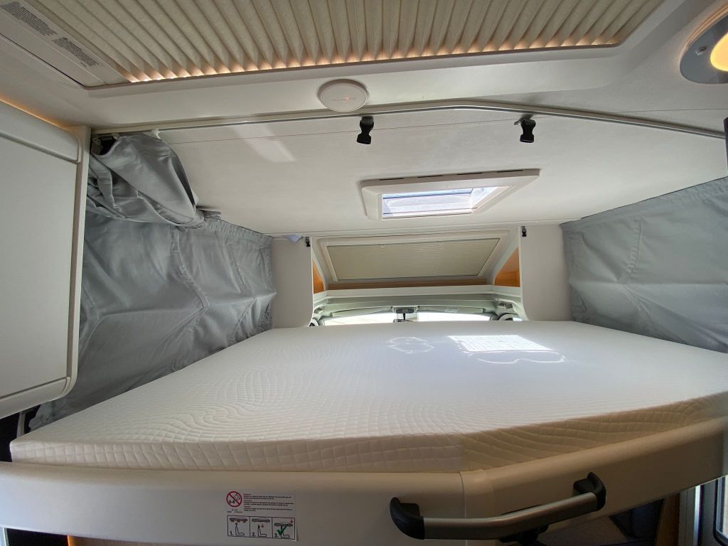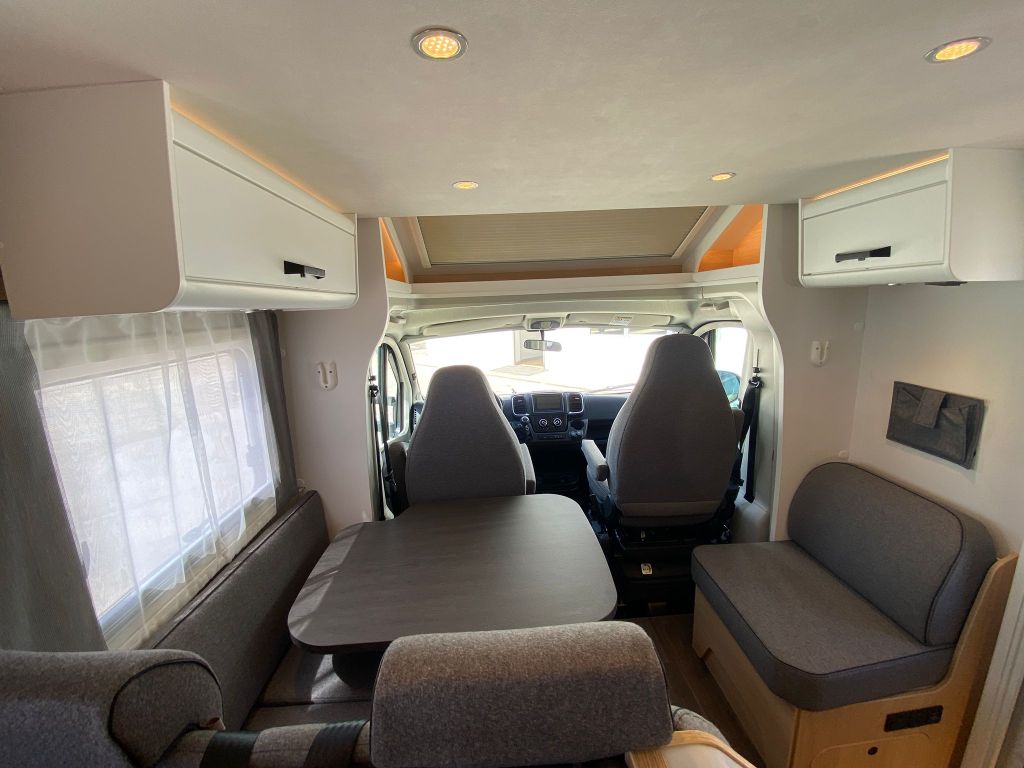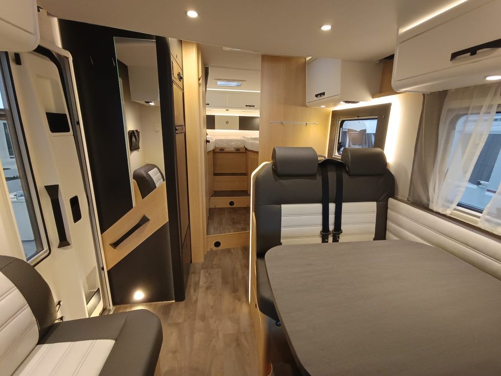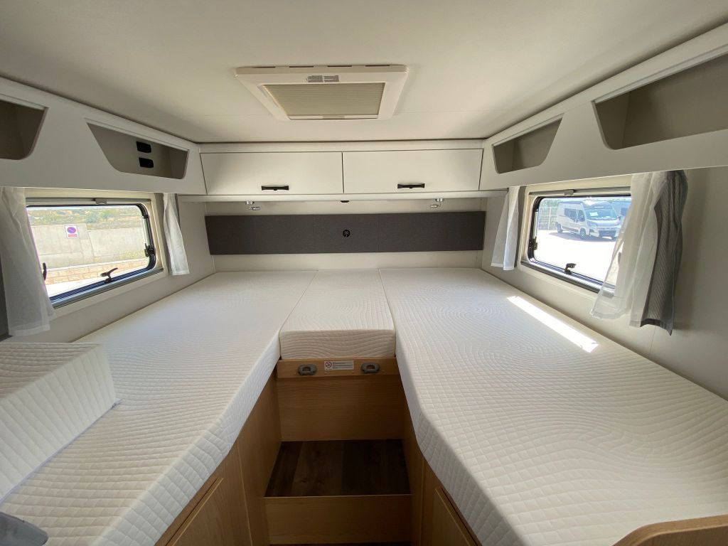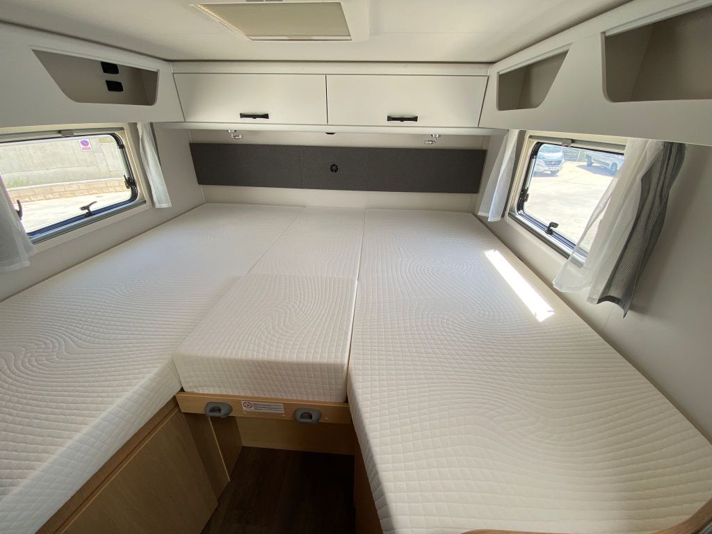 Su interior ofrece una distribución perfecta: camas gemelas traseras convertibles en cama doble de 2x2 m, cama basculante y salón transformable en cama adicional. ¡Espacio y versatilidad para todos!
