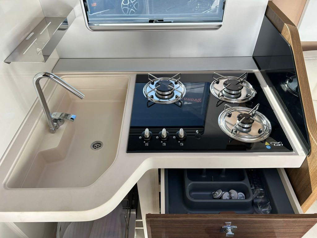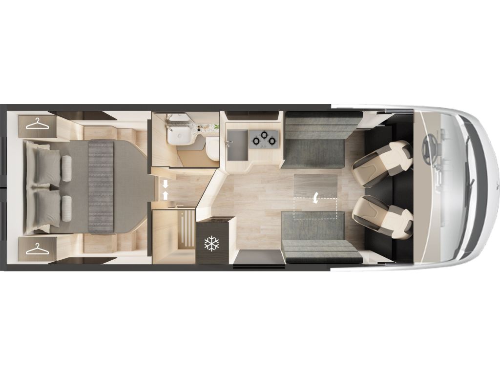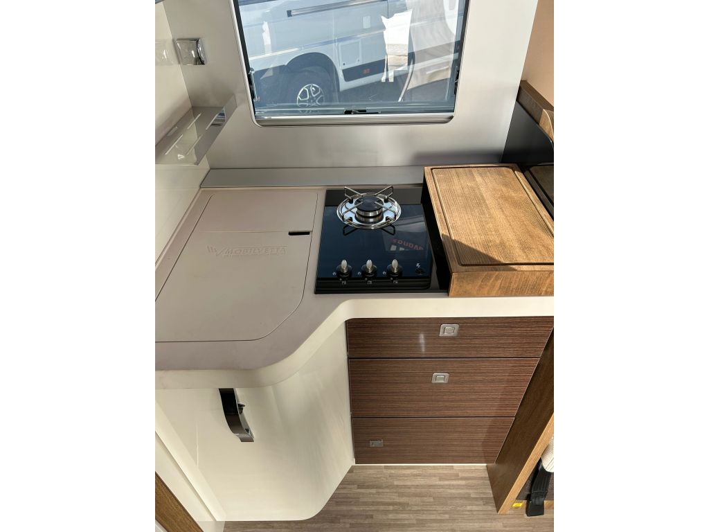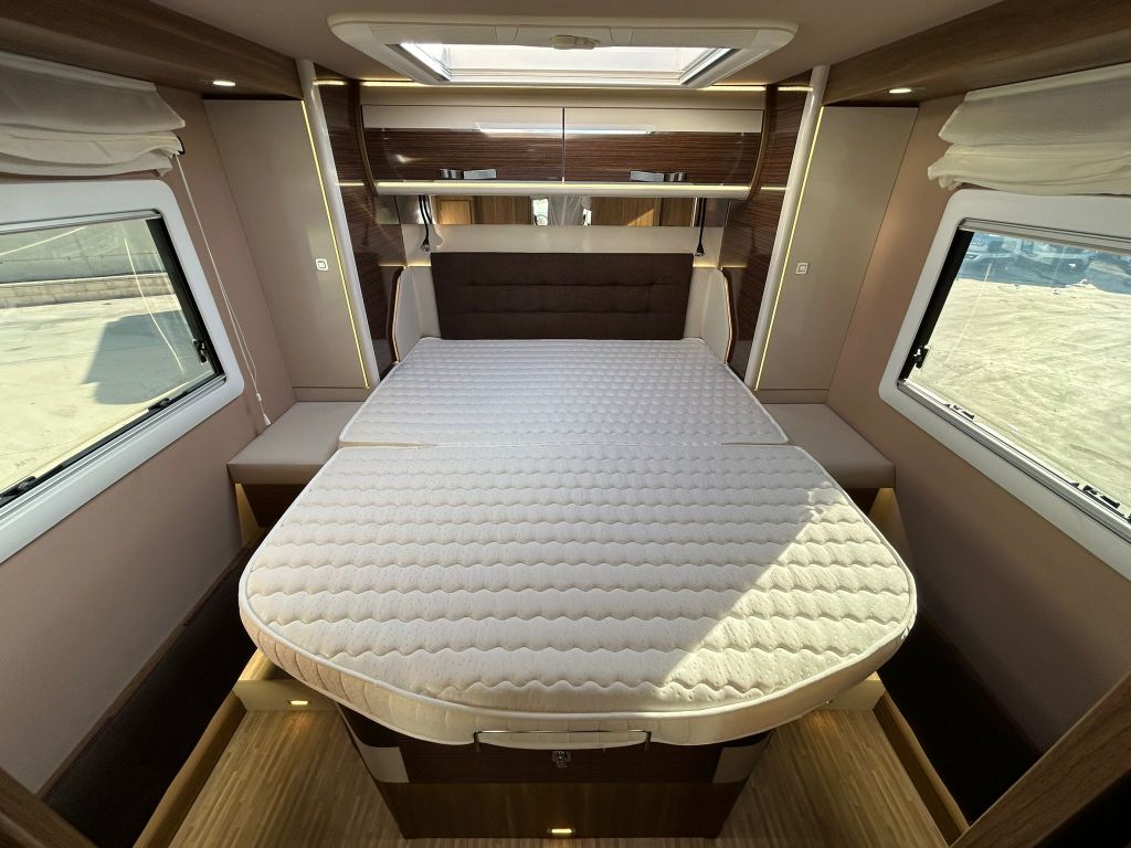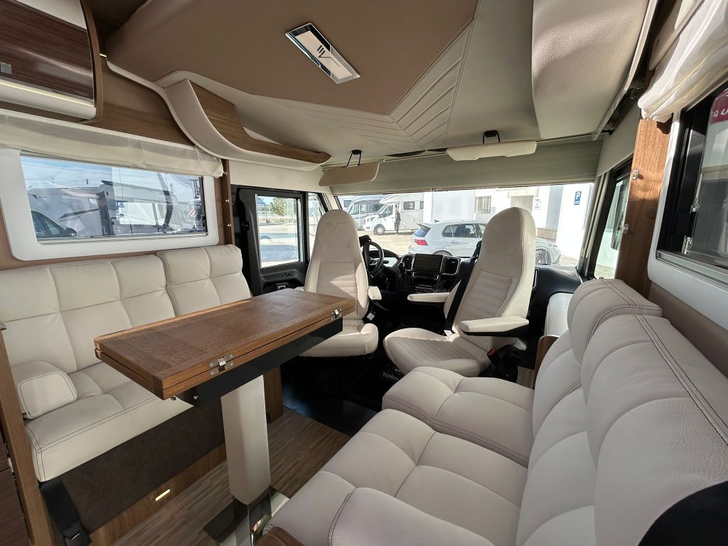 Autocaravana integral Mobilvetta de 4 plazas con salón "Face to face" y cama isla