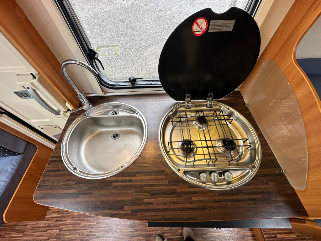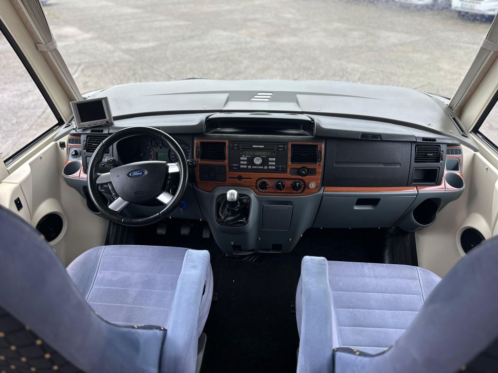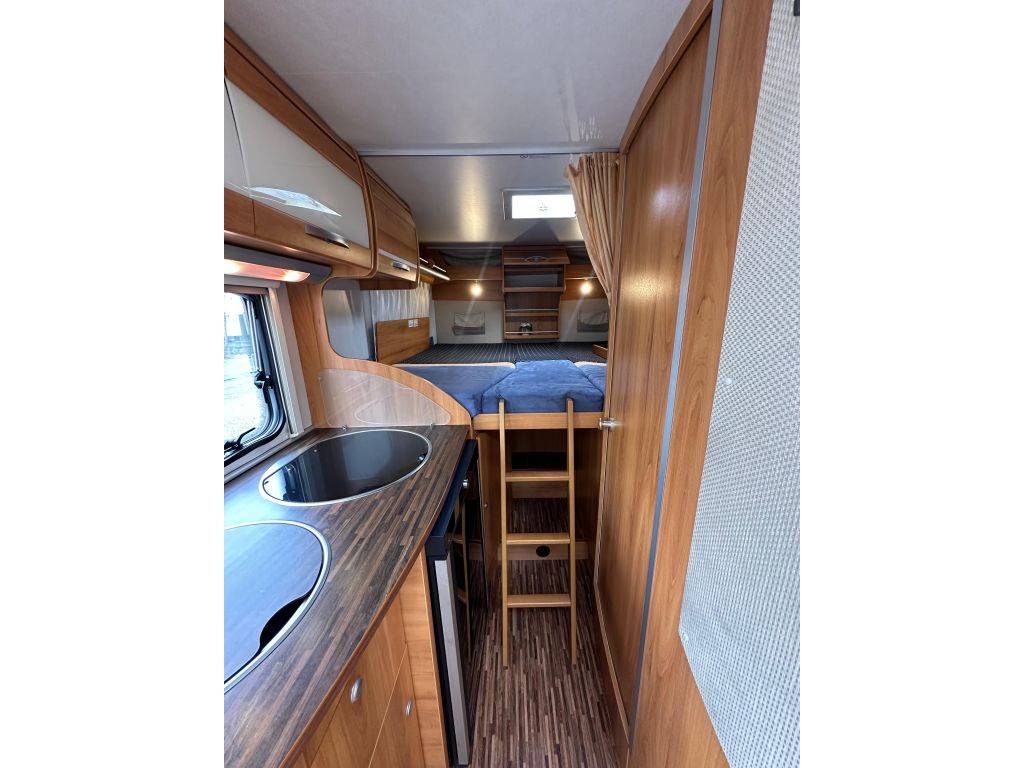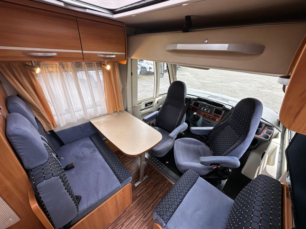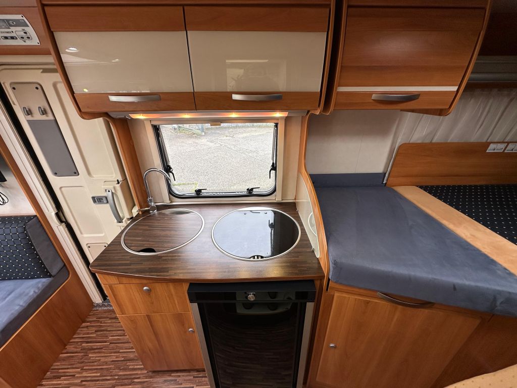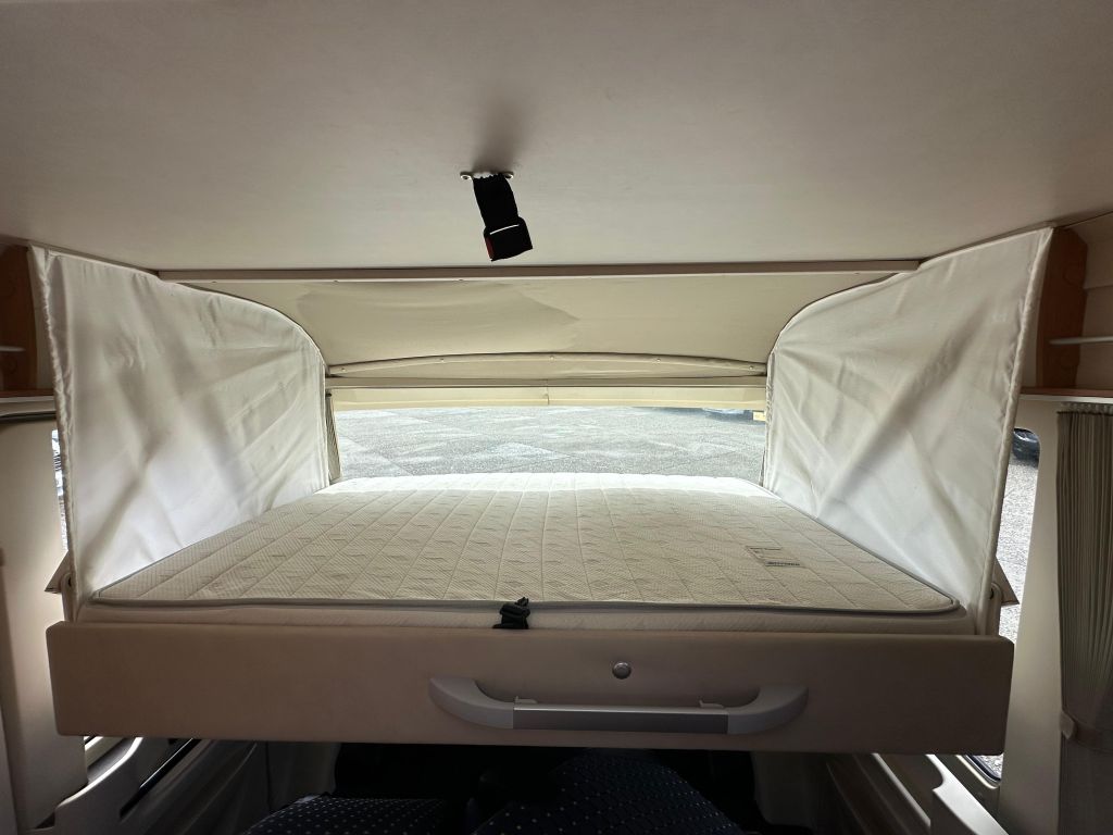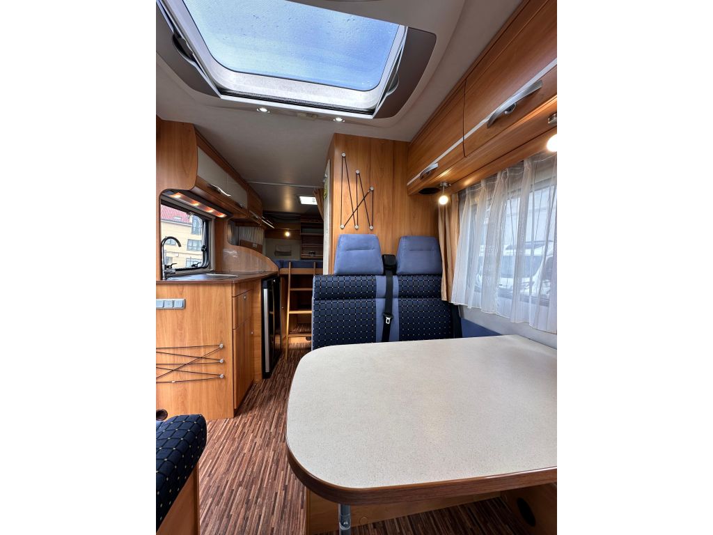 Esta autocaravana integral de tan solo 6.73m, ofrece una distribución muy versátil. Cuenta con* camas gemelas traseras*, con la posibilidad de ampliar a una cama de matrimonio de 191X193cm. Dispone de un gran almacenamiento bajo la cama izquierda con apertura vertical. La cama de cabina , tiene dos opciones de apertura, siendo la común con unas medidas de 140x 174cm . Haciendo la apertura de dicha cama obtenemos una medida mayor de 200x174 cm sin llegar a limitar el salón en su totalidad. También cuenta con otra cama adicional en la mesa del salón. En este vehículo pueden llegar a dormir más de cinco personas, aunque para viajar solo permite cuatro. Este vehículo cuenta con el baño modul-space dejando una zona muy amplia en la ducha y una mayor comodidad para el uso del aseo. Dispone de un armario amplio y una claraboya en techo que aporta gran luminosidad. El garaje es amplio , con capacidad para almacenar la rueda de repuesto. Permite un cómodo acceso a las bombonas y dispone de cestas de almacenaje.