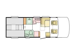 Autocaravana perfilada PILOTE de 4 plazas con camas gemelas y el aseo separado de la ducha