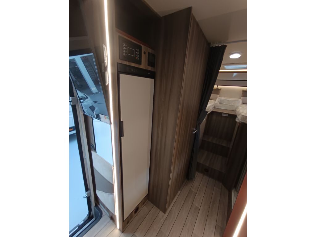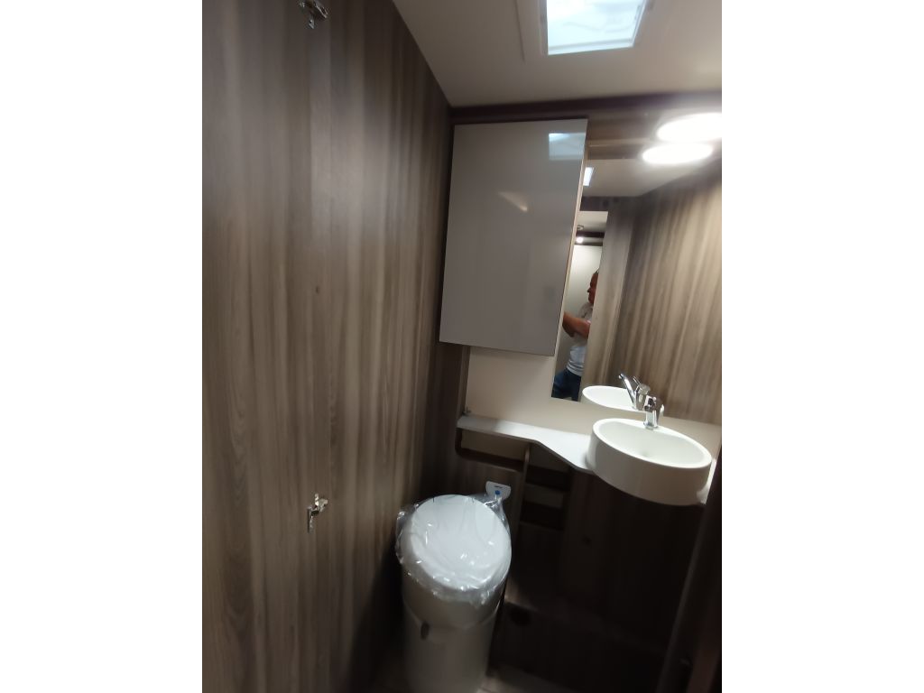 El **baño de la Roller Team Kronos 284 M ** están diseñados para optimizar los espacios y proporcionar así una buena habitabilidad y garantizar que todo esté al alcance sin renunciar al confort. La eficiencia y funcionalidad son dos elementos clave para que viajar en ella sea una experiencia excelente, por eso, este espacio está equipado con espejos grandes, iluminación LED y muebles altos. La ventana de doble acristalamiento asegura una buena ventilación. El baño dispone de: