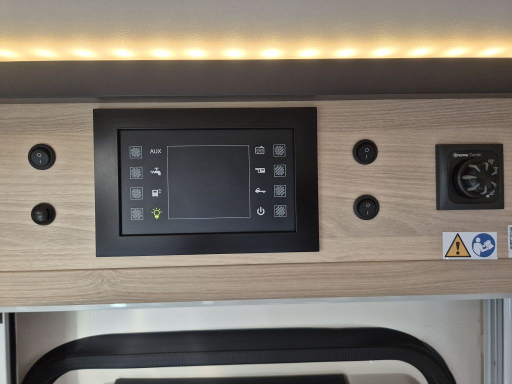 En cuanto a la energía y el confort de la autocaravana integral Itineo destaca por estar equipado con un sistema de calefacción y calentador de agua Truma Combi 4, con regulador que permite utilizar el gas durante la conducción. Además, para mayor comodidad tiene función Coming Home que enciende de manera automática la luz exterior encima de la puerta e ilumina el ambiente interior al desbloquear el vehículo o abrir la puerta de vivienda o conductor. La iluminación interior es de luz LED. El garaje también tiene iluminación propia. La autocaravana integral itineo JC740 cuenta con espacio para una 3ª batería y preinstalación para ducha exterior. Los enchufes USB son dobles en el salón y en el dormitorio, mientras que en el garaje se encuentra una toma de 230V. La batería de la vivienda AGM es de 921 Ah con acoplador, separador y refuerzo.