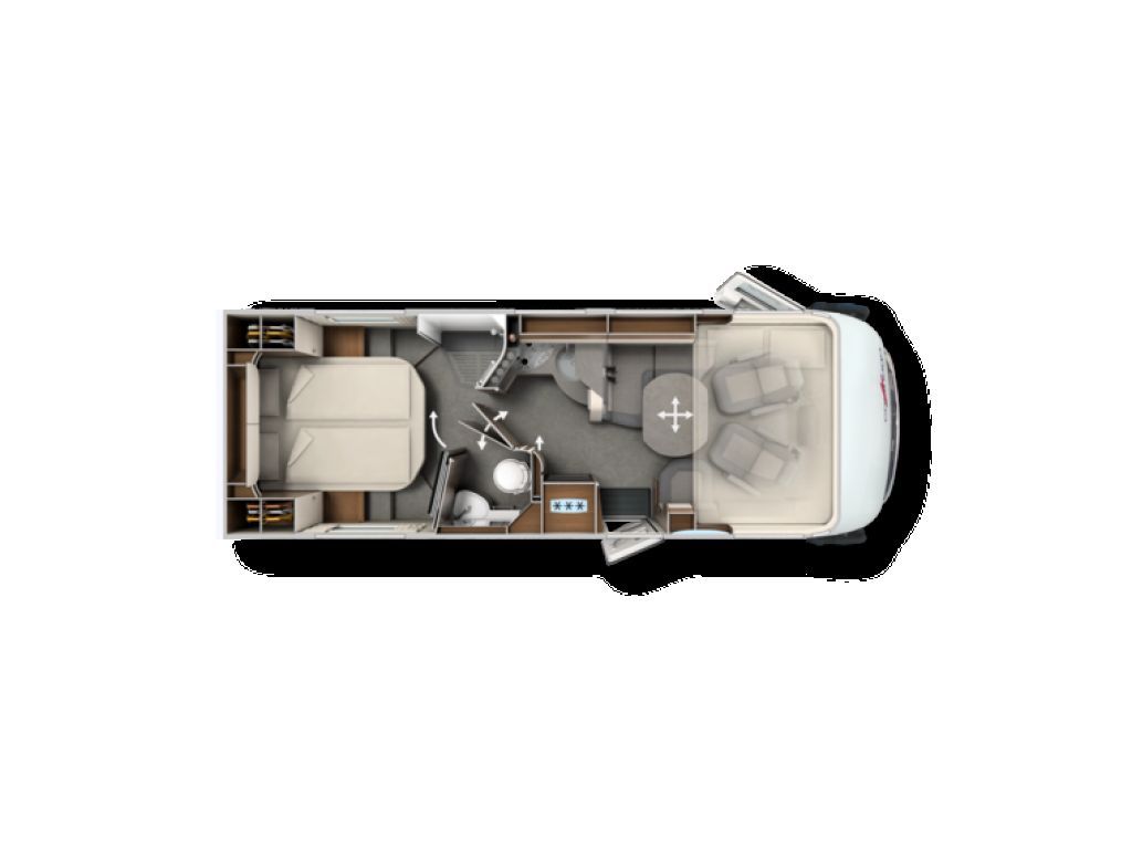 Este modelo se caracteriza por un diseño exterior exclusivo, con el frontal V-Face de Carthago, una parte trasera en PRFV de estilo moderno y luces con intermitentes LED, que aportan a la autocaravana una imagen elegante y sofisticada.