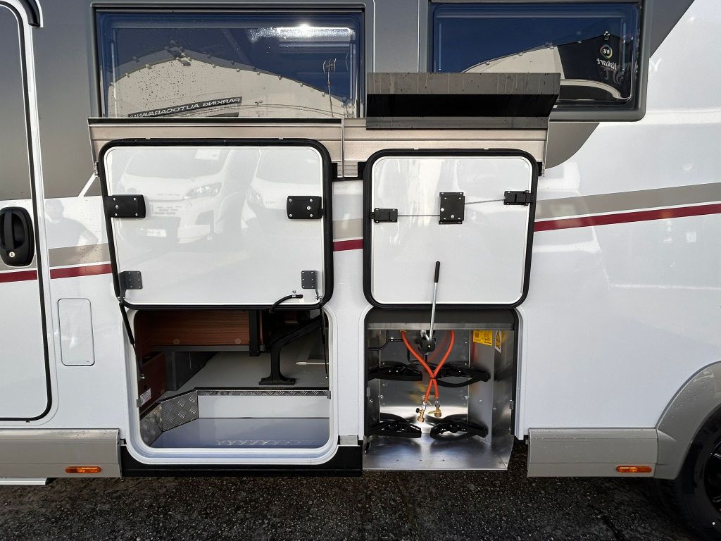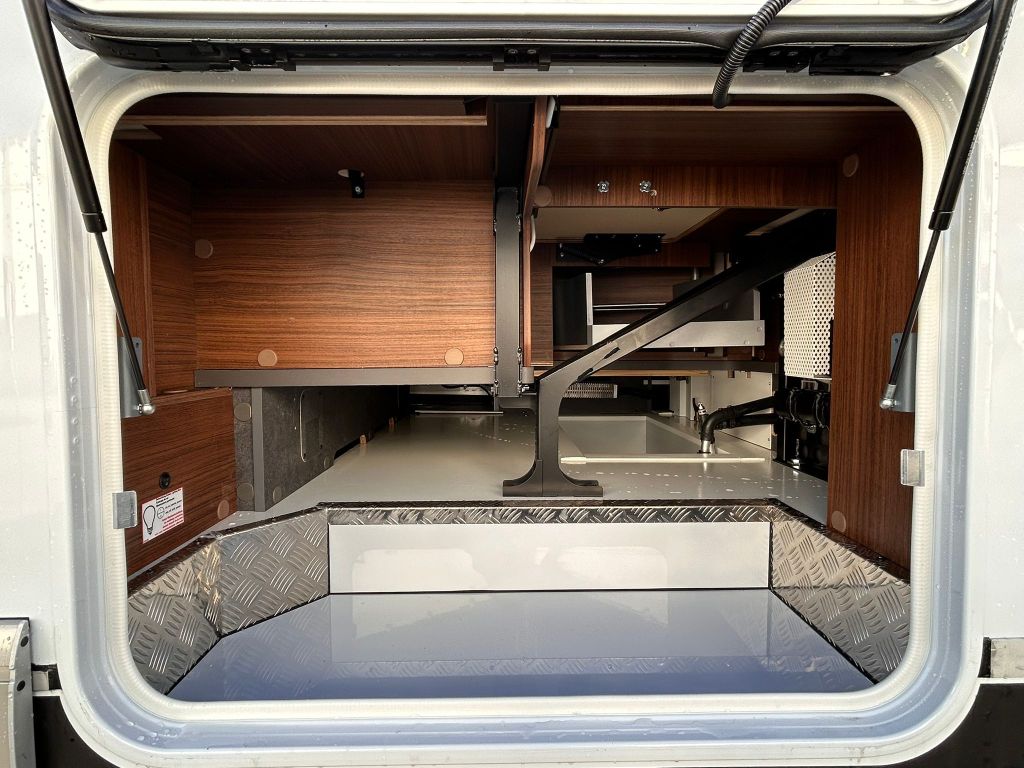 Uno de los grandes puntos fuertes de la marca es su bodega de doble suelo, que ofrece un amplio espacio de almacenamiento calefactado, con una altura útil de hasta 70 cm. Este espacio es accesible a través de varias compuertas de gran tamaño, tanto desde el exterior como desde el interior de la vivienda mediante la cubierta del sofá, facilitando una carga cómoda y ordenada.